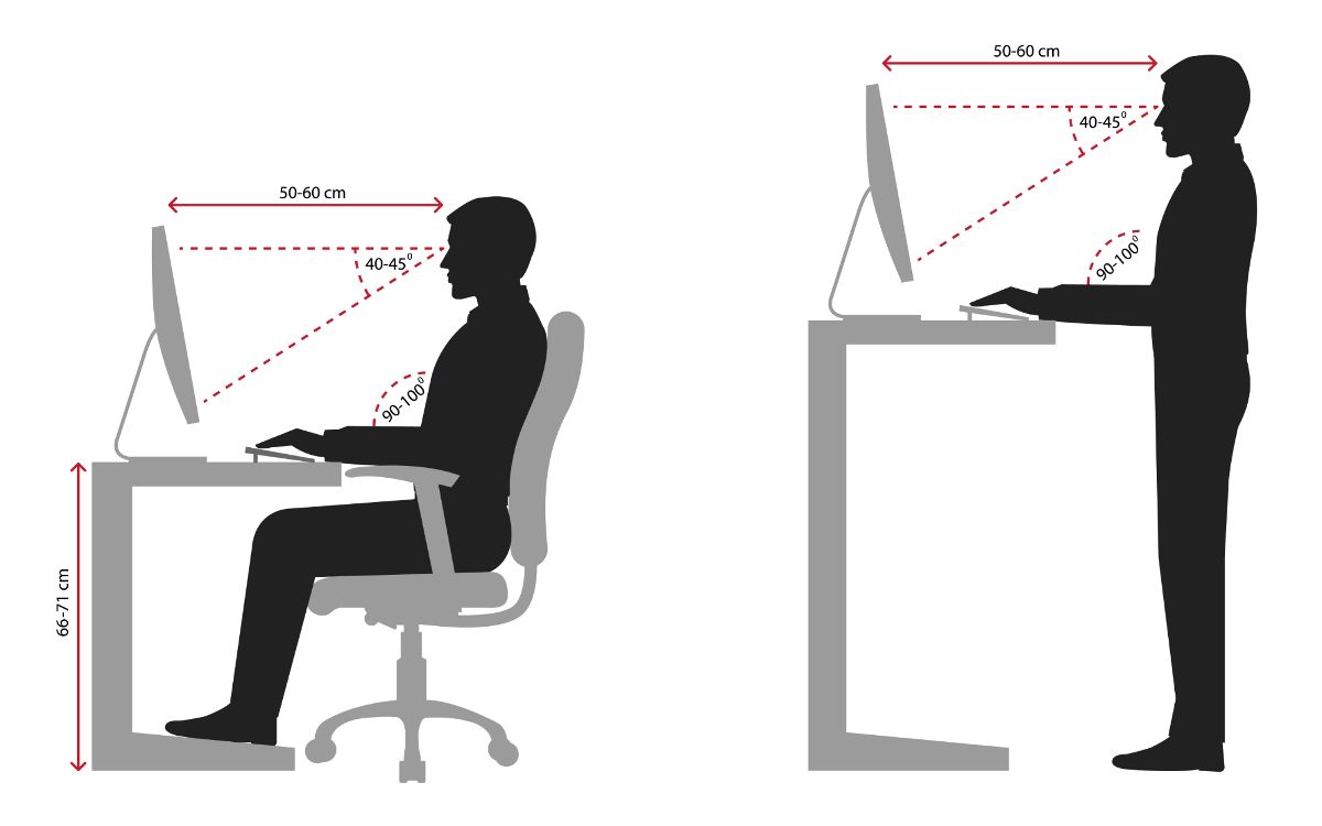 - Поддержка шеи и головы: важным аспектом является уровень, на котором находится монитор, чтобы шея оставалась в нейтральном положении без необходимости наклоняться или запрокидывать голову.