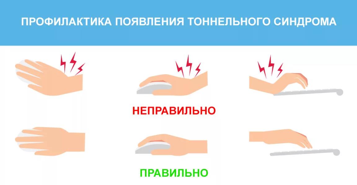 Такие меры в совокупности с регулярной разминкой значительно снизят риск развития туннельного синдрома и сделают повседневную работу более комфортной․